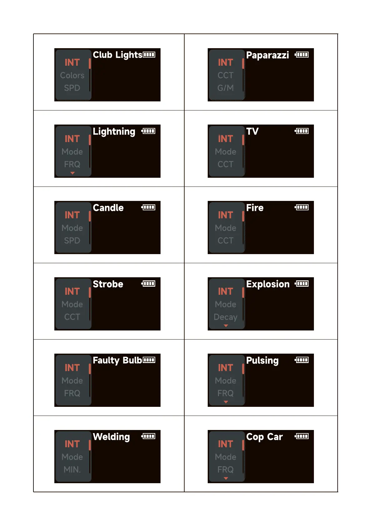 7.Strobe 8.Explosion