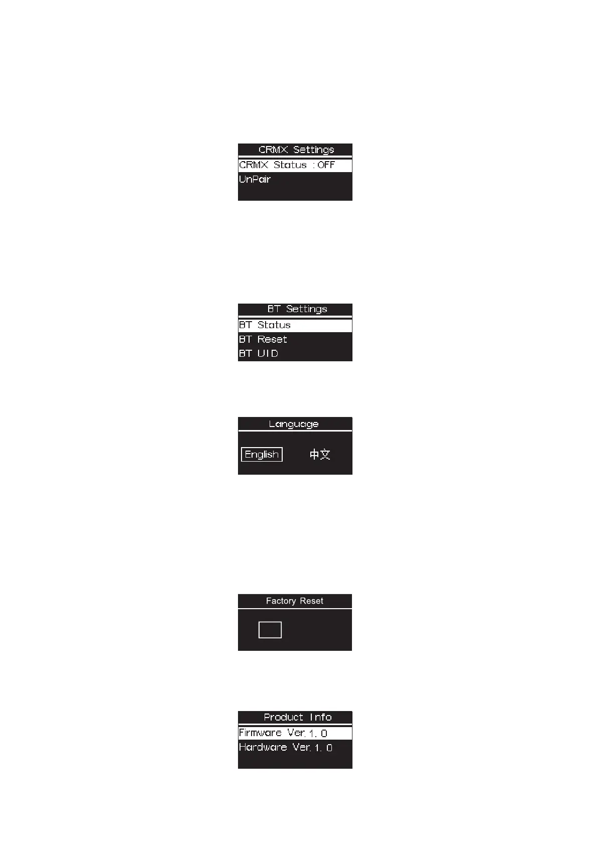 Press MENU to access the system menu, rotate and press the control wheel to select CRMX Setting mode.