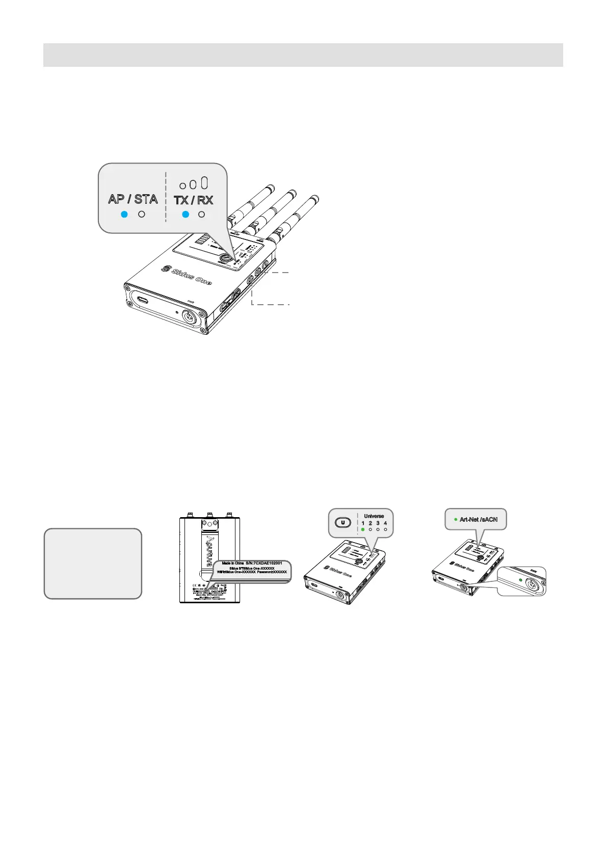 will be solid. If DMX data is patched on the Universe Sidus One is set to listen for, the the DMX indicator light