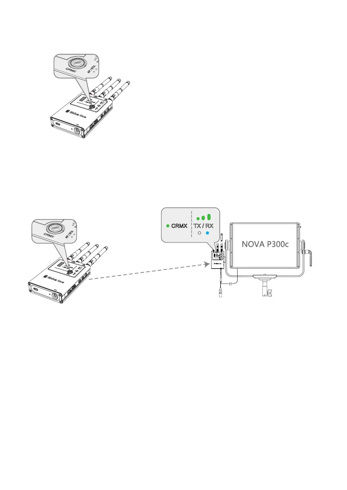 The CRMX Status Light will flash rapidly on both devices. Once the Sidus One RX is linked, its CRMX