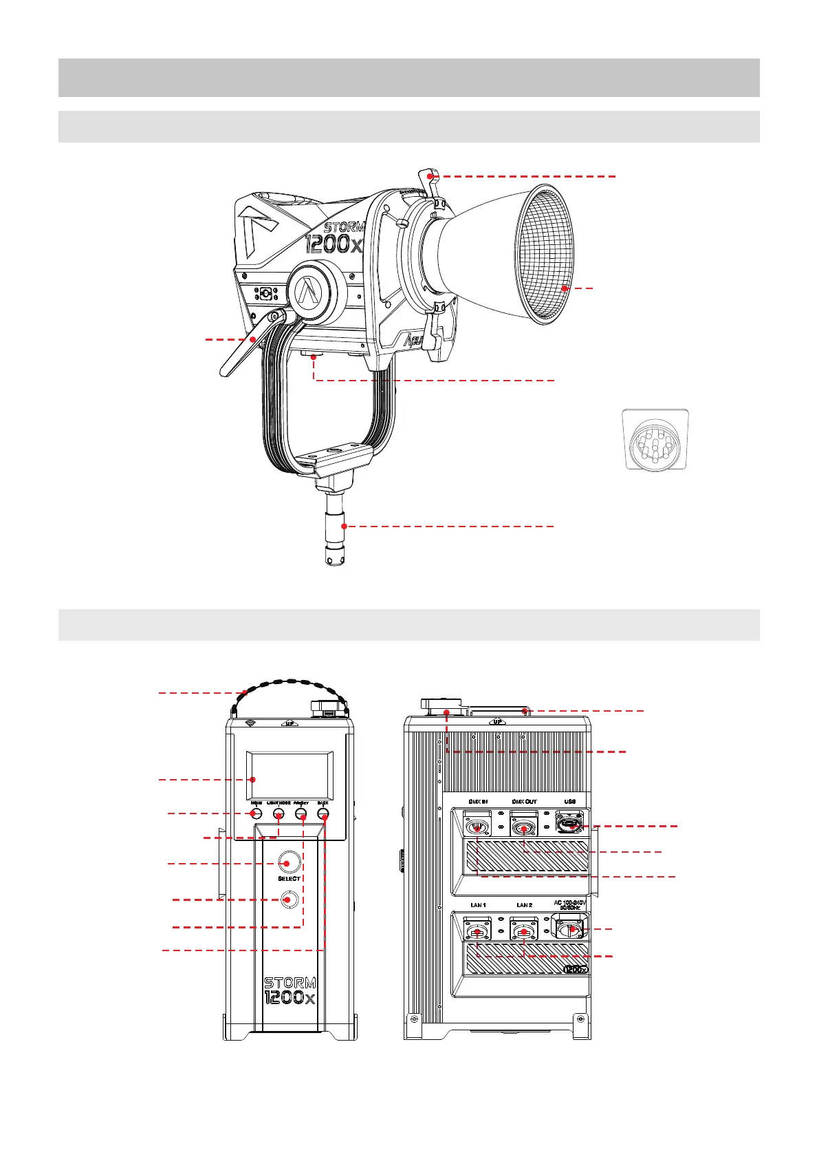 Aputure STORM 1200x - Product Overview; Lamp Head; Control Box
