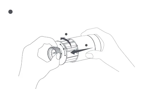 Setzen Sie das Gehäuse auf und drehen Sie es in Pfeilrichtung, bis es