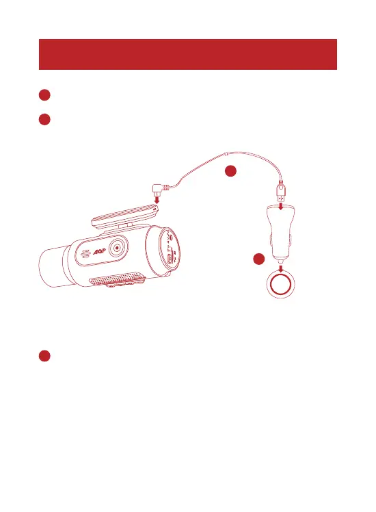 Connect the car charger and DashCam by using the charging cable.