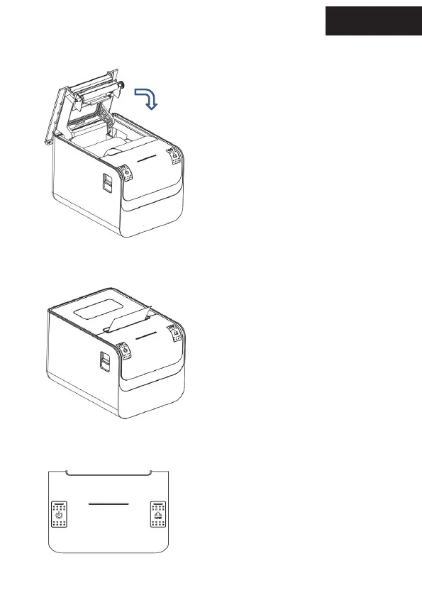 3. Puxe parte do papel para for a e depois feche a tampa.
