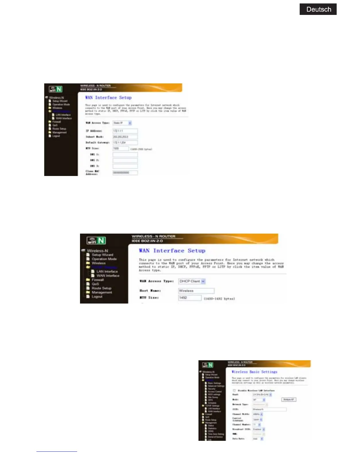 Klicken Sie auf „Wireless -> Basic Setttings‰ im Webmanagement
