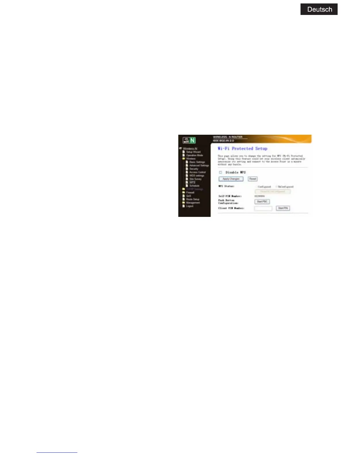 Klicken Sie auf „Wireless-> WPS‰ im Webmanagement Interface. Die