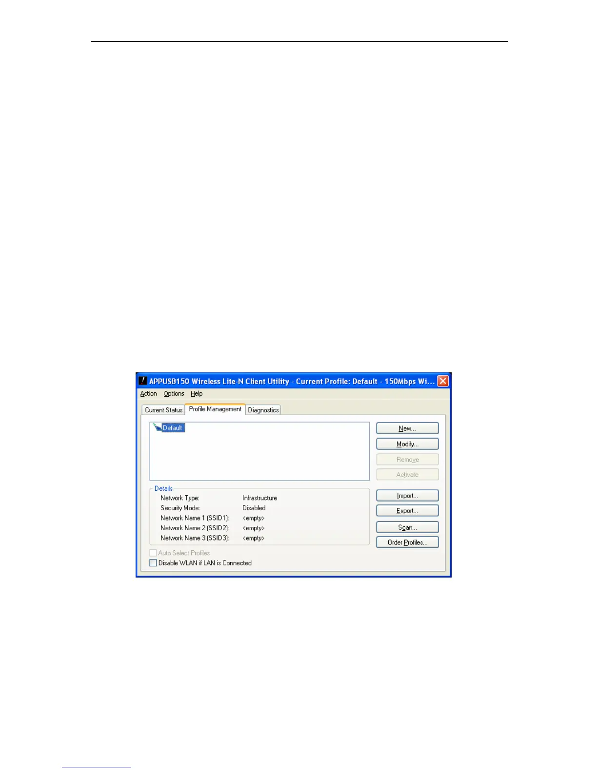 Cliquez sur l 'onglet Profile Manag ement de l' AWCU et l'écran suivant s' affiche (illustré à la