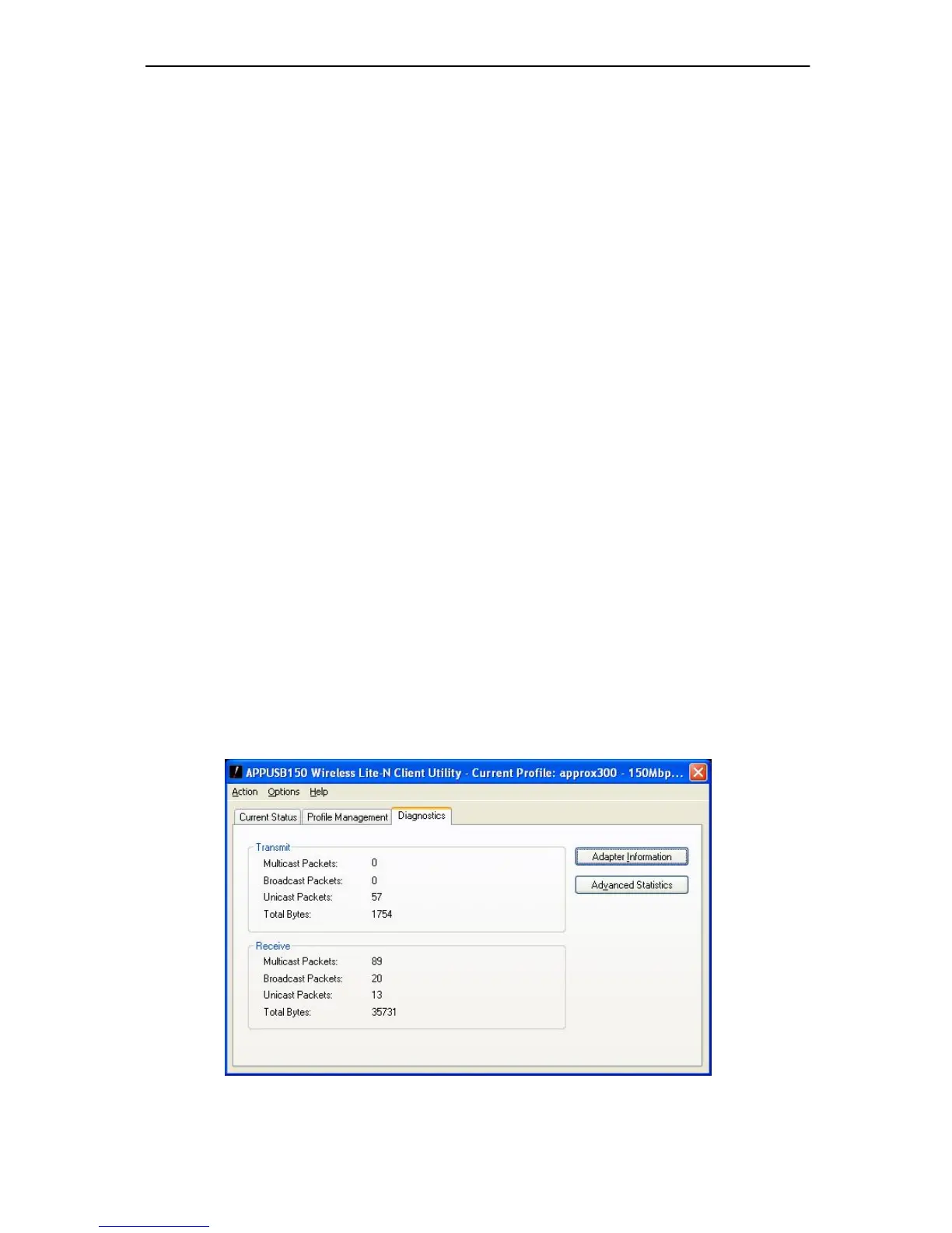 ottenere st atistiche ricevute e trasm esse. La linguett a Diag nostics non richiede nessuna