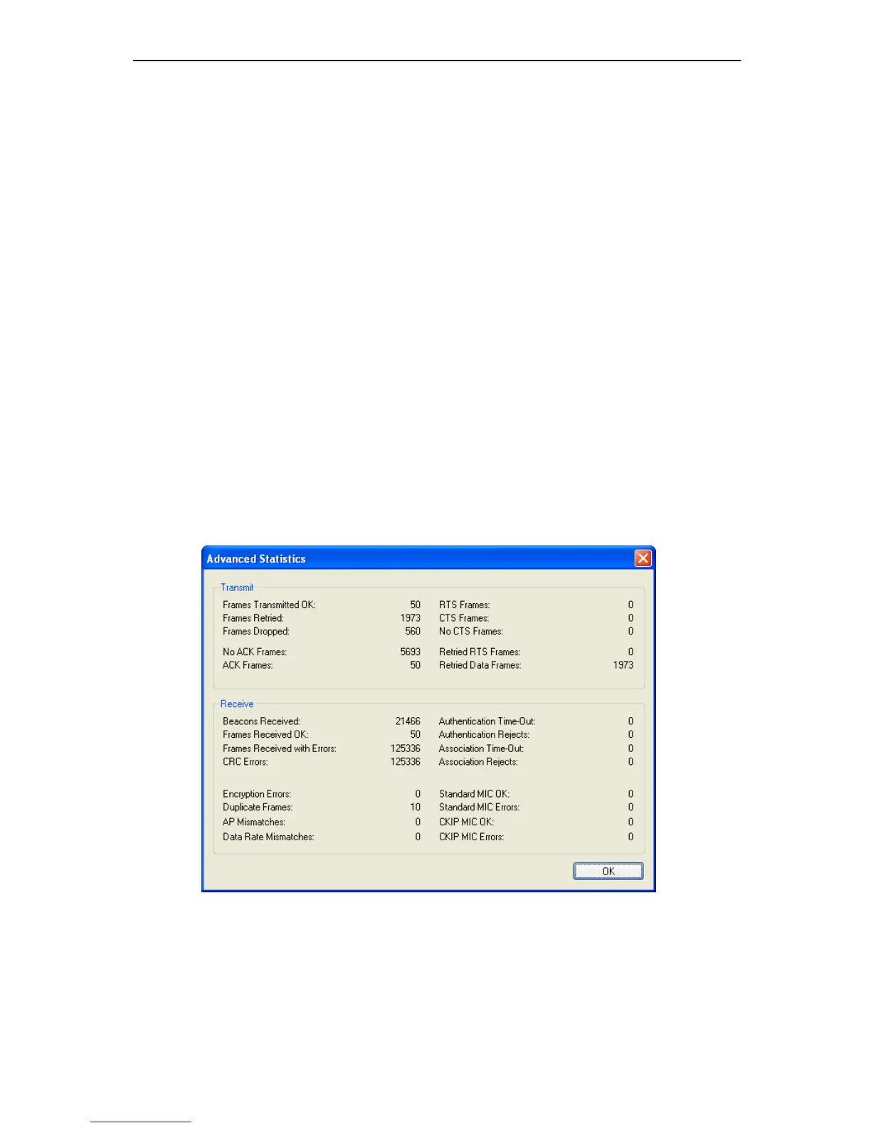 La finestra Advanced Statistics mostra le informazioni statis tiche ricevu te e trasmesse sui