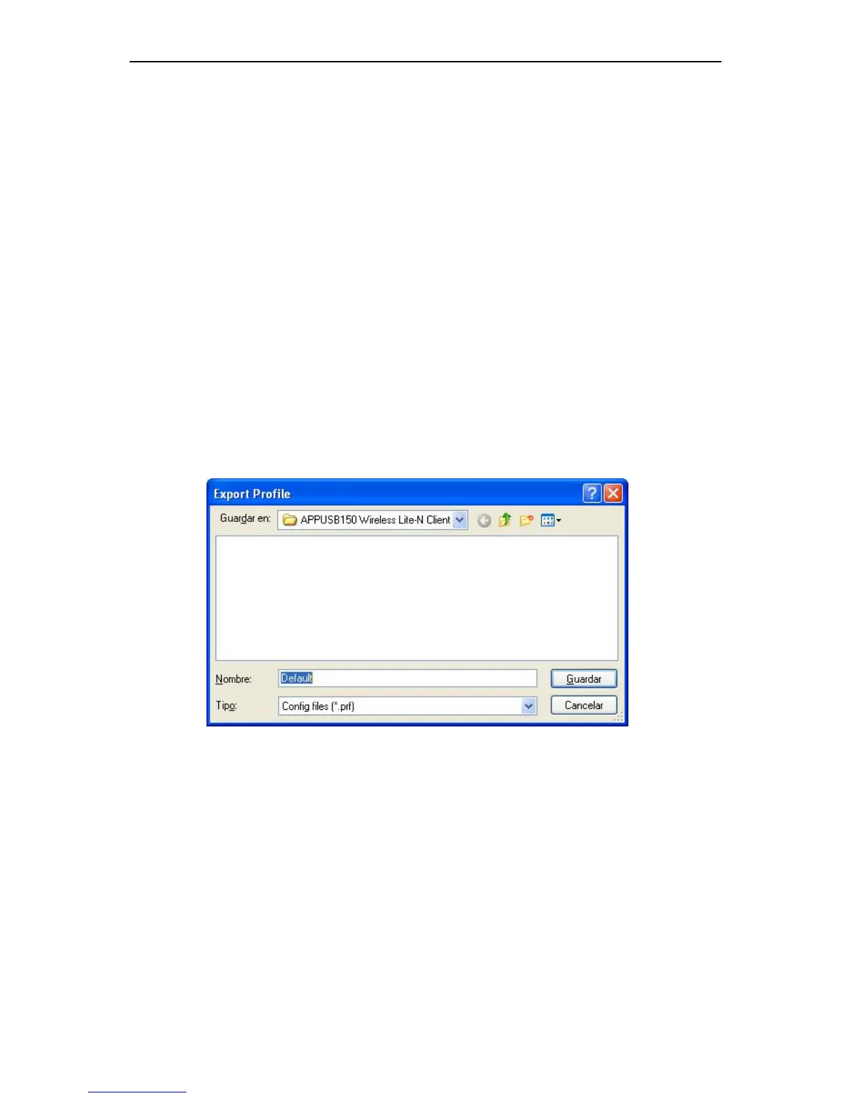 2. Clicar em Export…, a janela de Export Profile aparece abaixo.