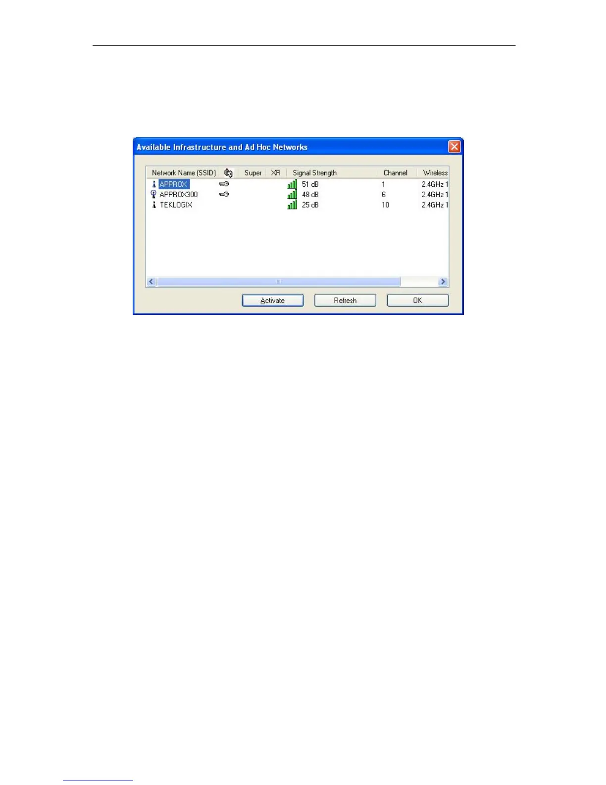 3. Seleccione un nombre de red y haga clic en Activate para conectar a una red disponible.