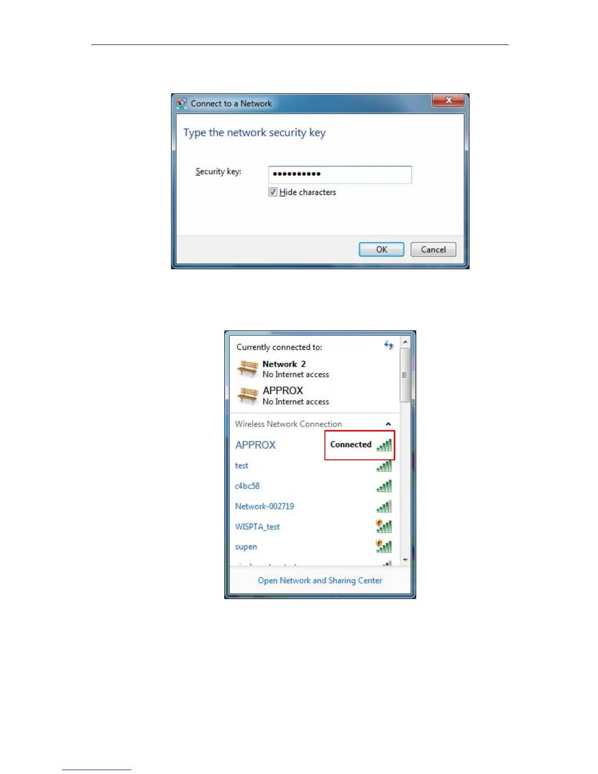 2. Si su red es segura, introduzca la clave de acceso y haga clic en OK.