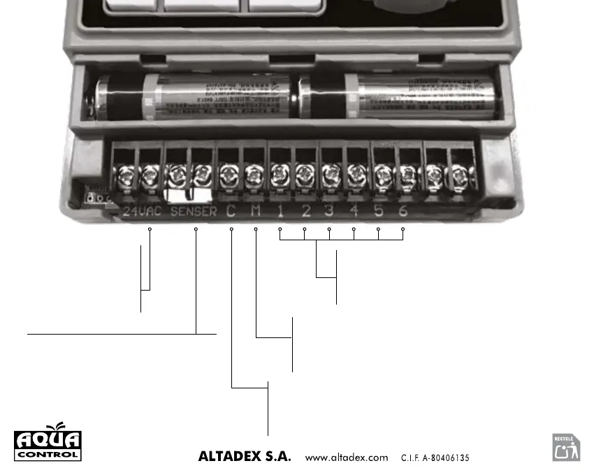 Dient dem Anschluss eines Kabels von jedem Elektroventil.