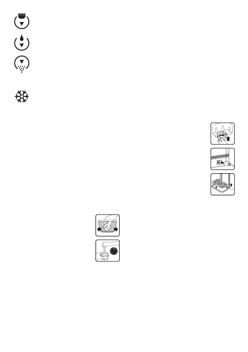 Dzesēšanas režīms/izskalošanas ikona: Ja ierīce atdzesē ūdeni, iedegas nepārtraukta