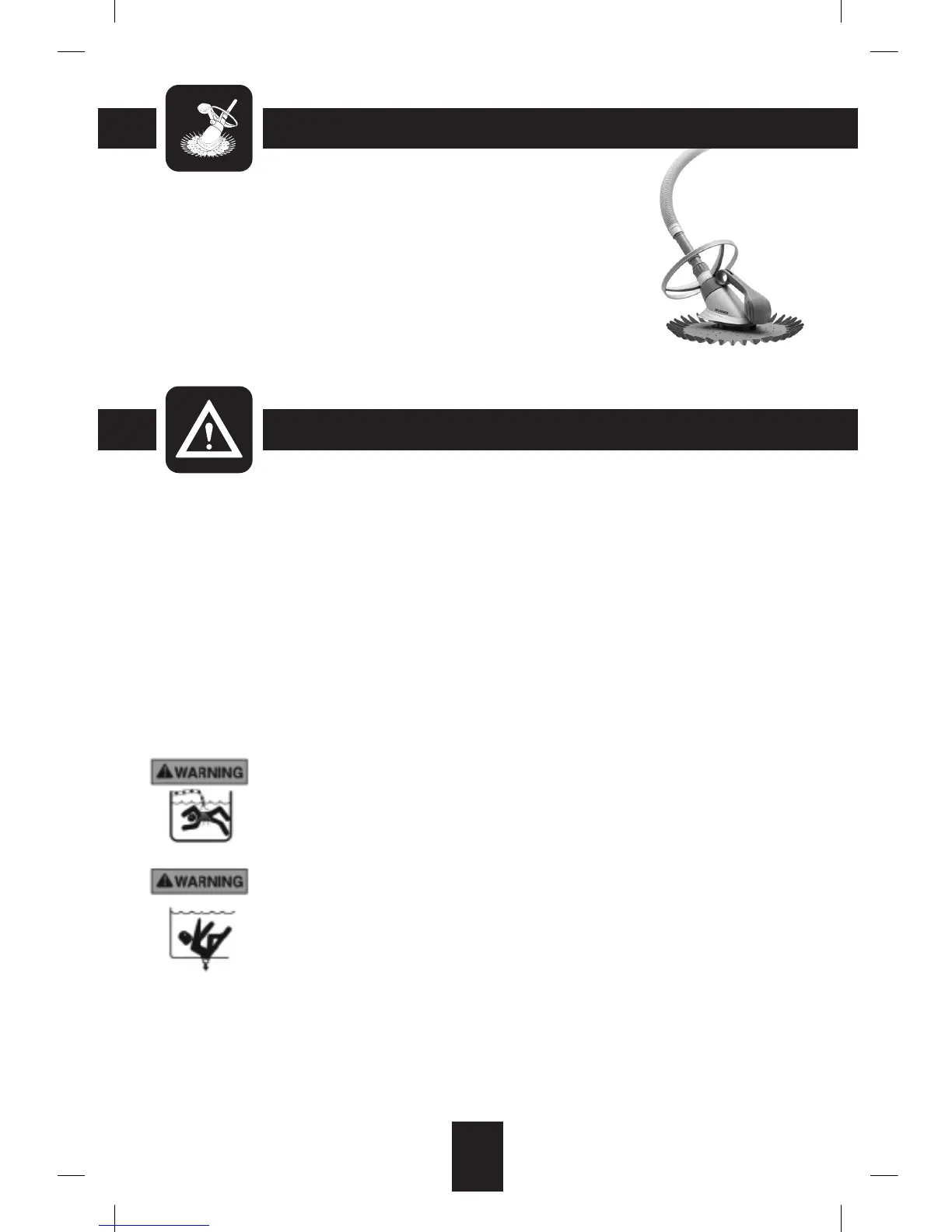 Information and Safety: This pool cleaner is designed and manufactured to provide many years of safe