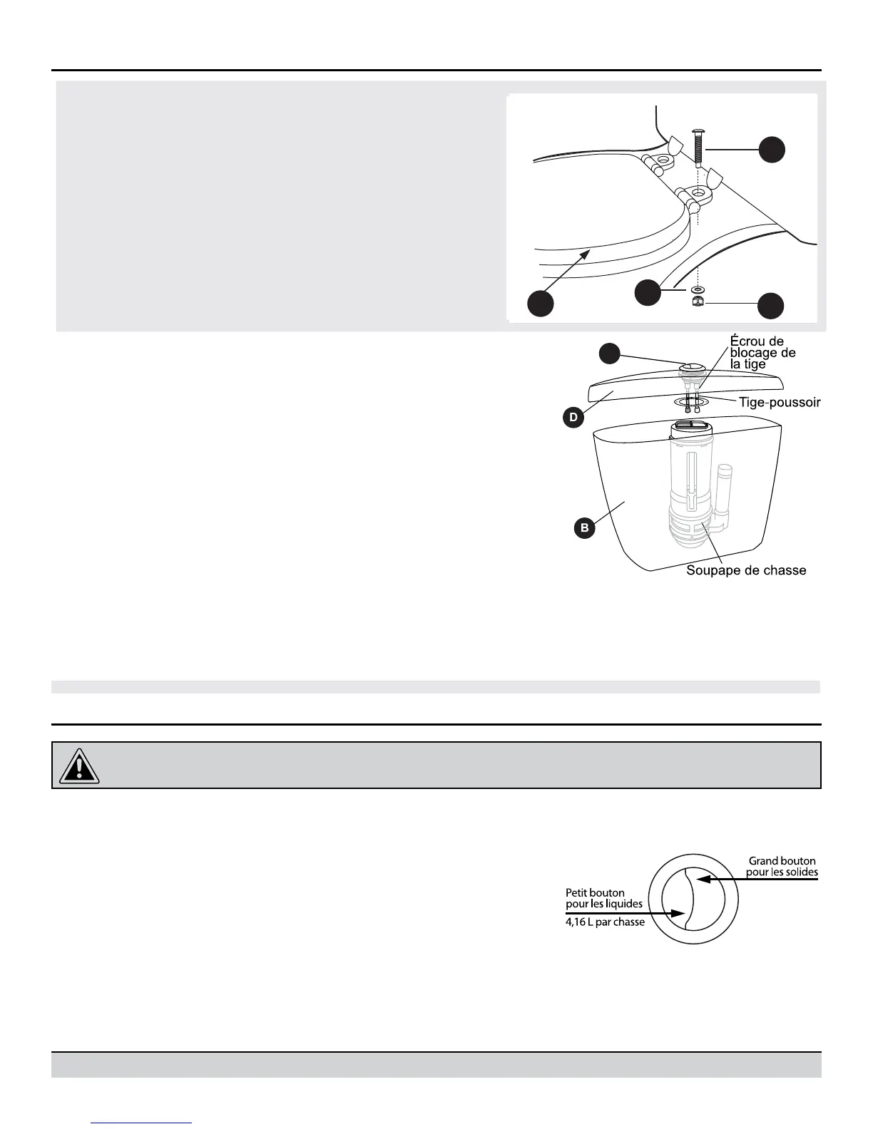 • Les soupapes de chasse d’eau ont été réglées à l’usine et elles ne devraient pas nécessiter de réglages