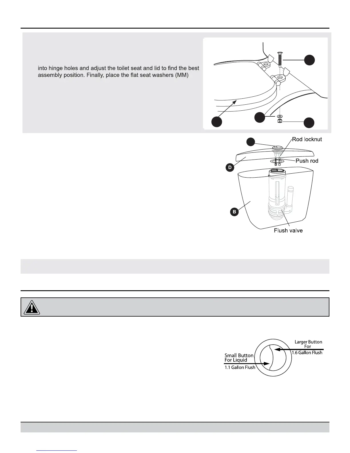 top of the flush valve per-assembled to tank (B) and the larger button
