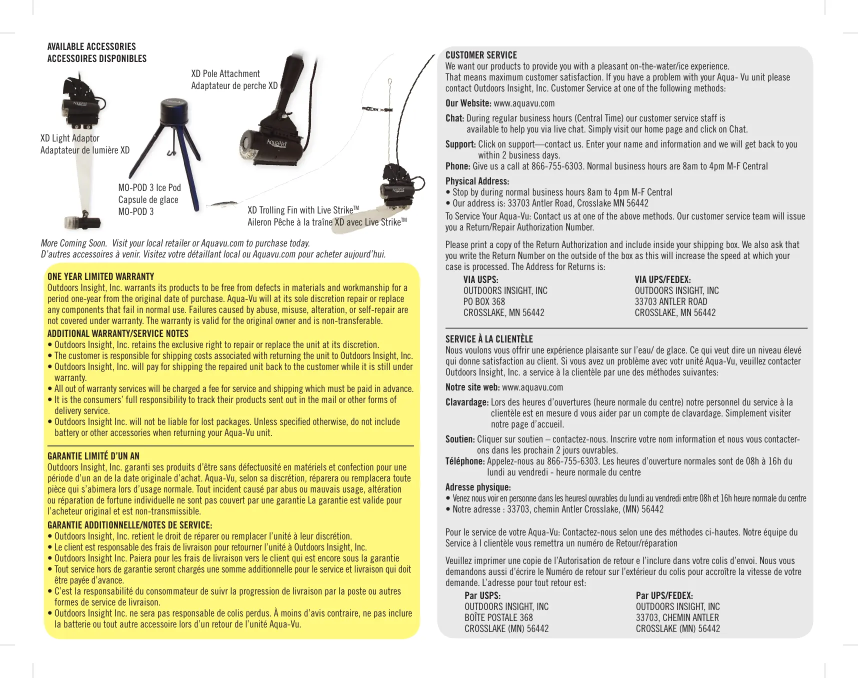 • Le client est responsable des frais de livraison pour retourner l’unité à Outdoors Insight, Inc.