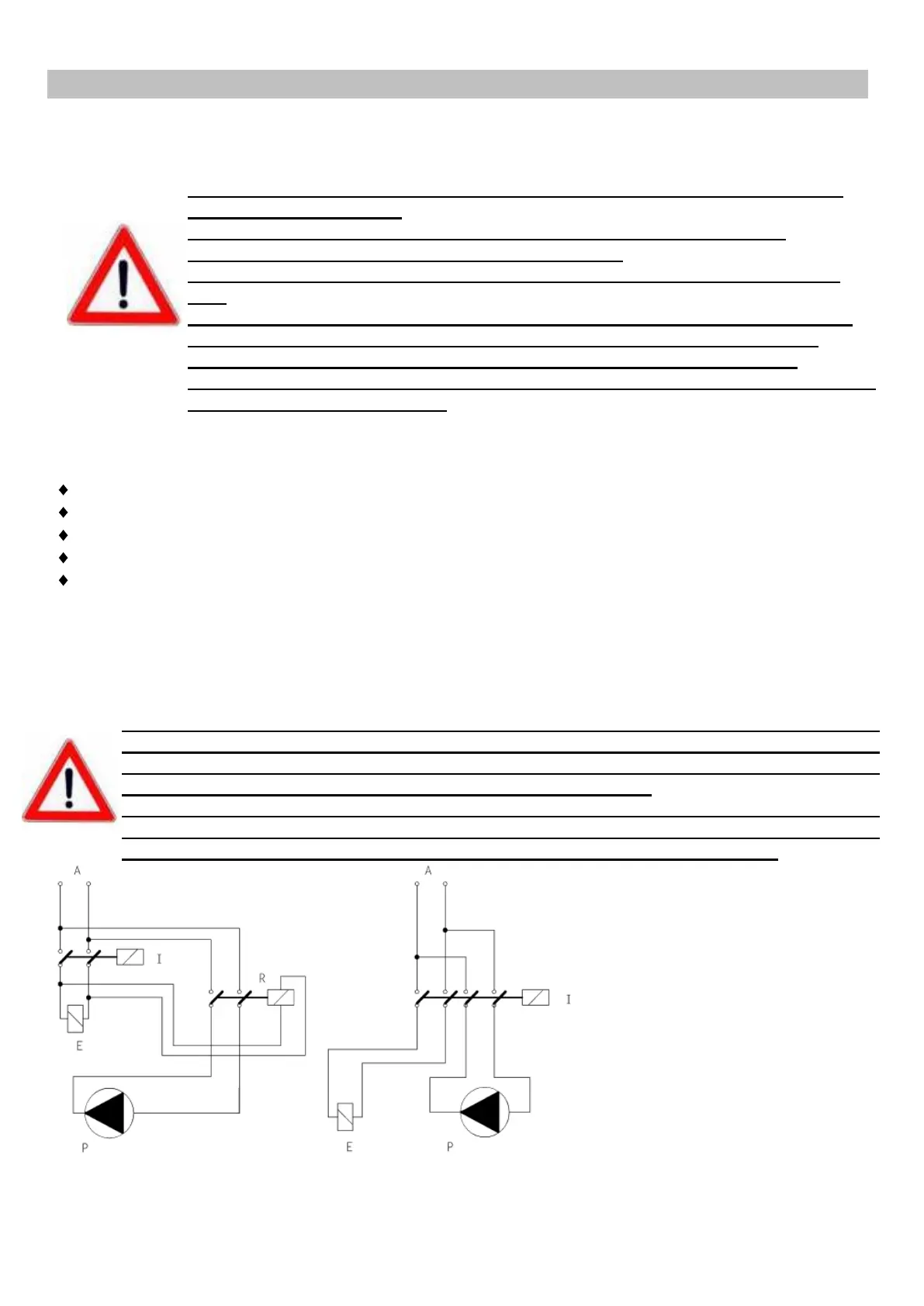 Ne jamais installer la pompe directement en parallèle avec des charges inductives