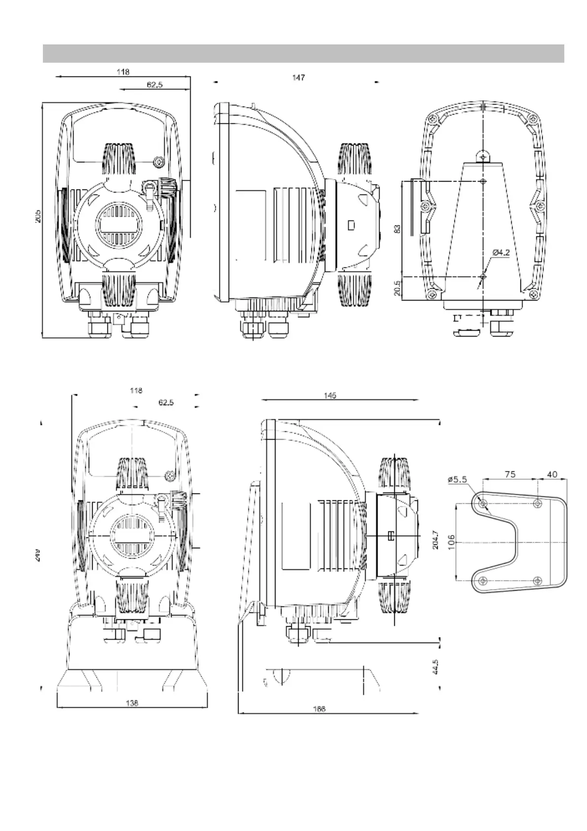 Fig. 6 SERIE “HC 997” CON BASE / BASE MOUNTING / VERSION AVEC BASE