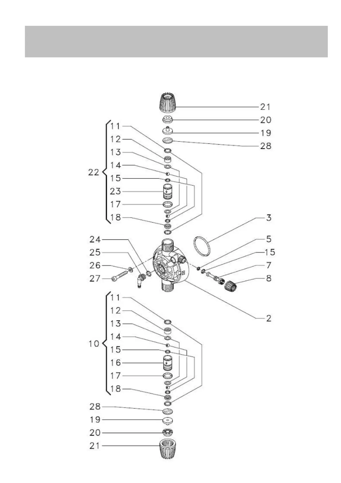 Fig. 22 HC 797-897-997 Corpo pompa valvole a labbro e sfera / Pump head lip and ball