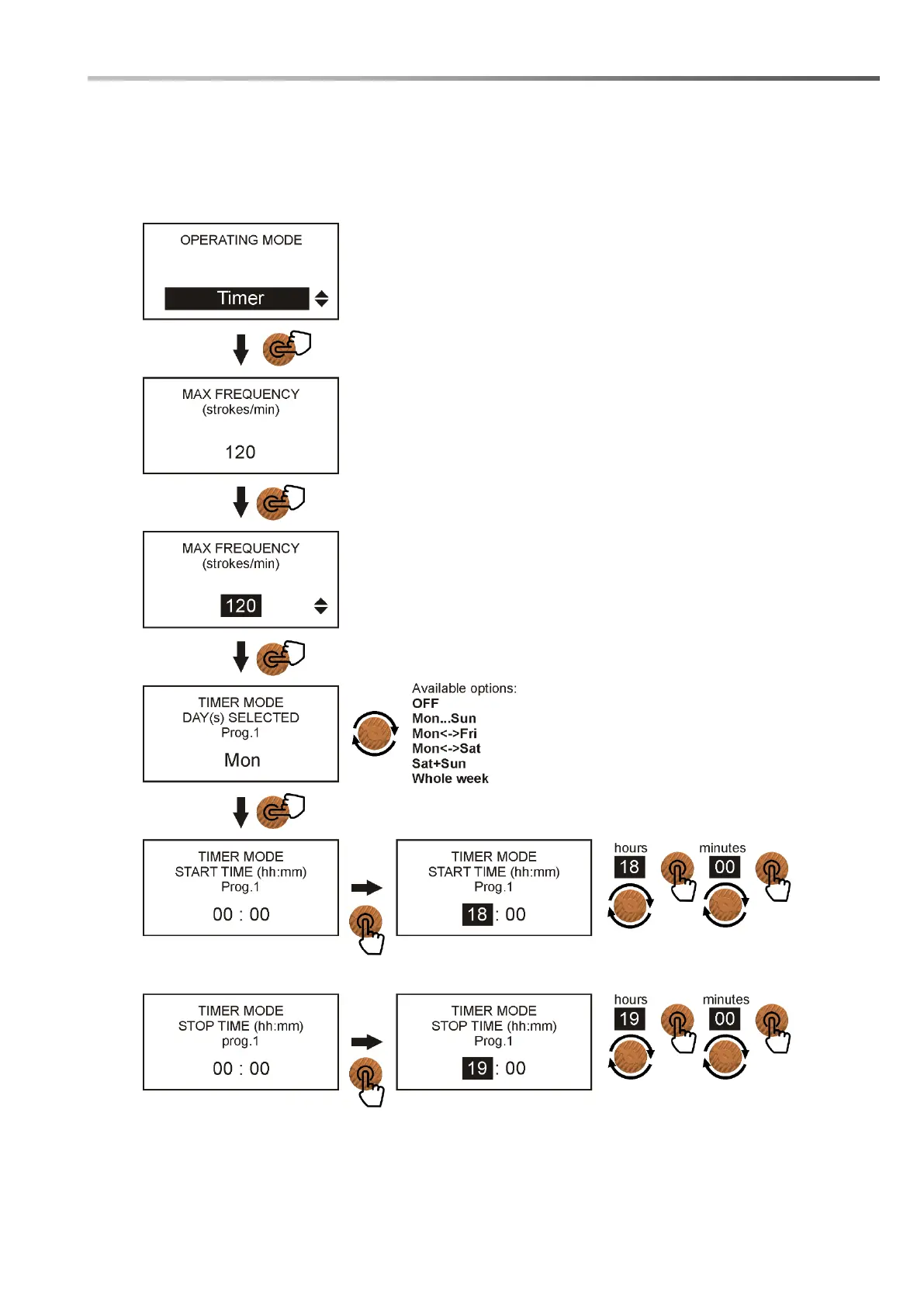 This mode allows the user to set a dosing time of the chemical product by programming an