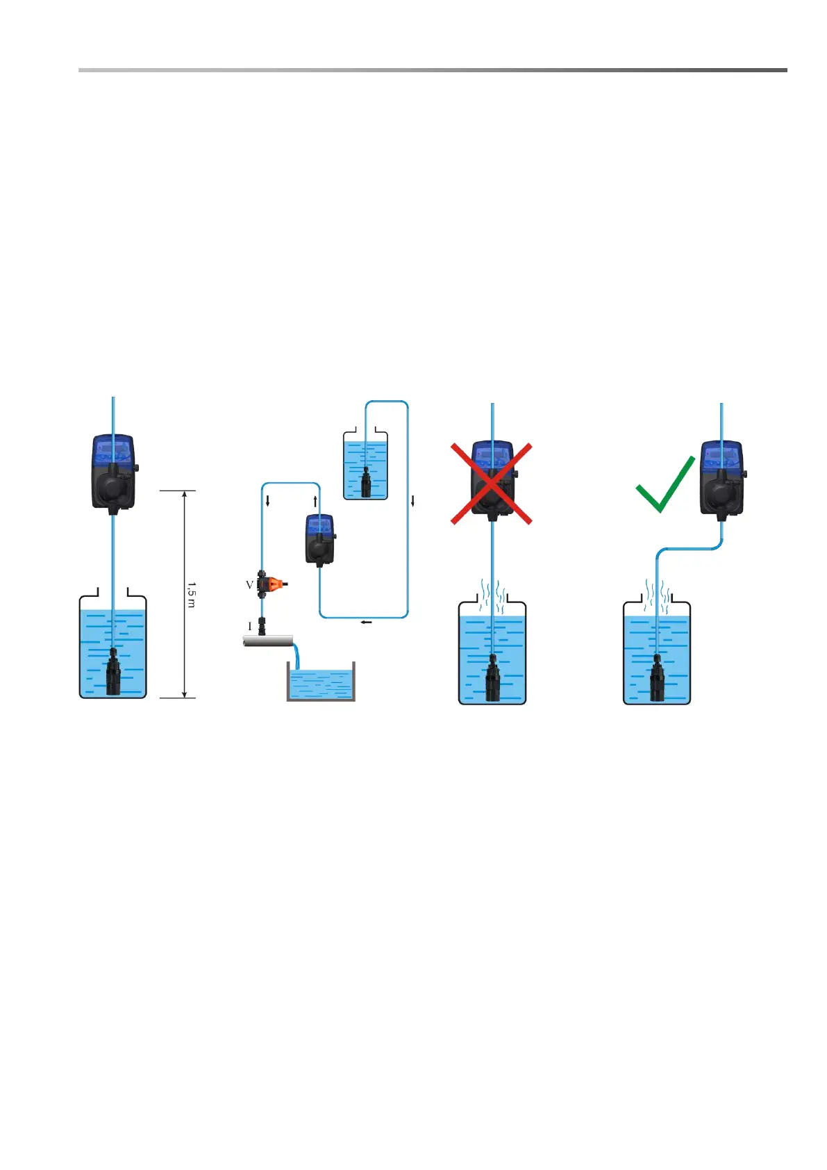 Strictly follow the instructions for a correct installation of the dosing pump to avoid malfunctions. The most