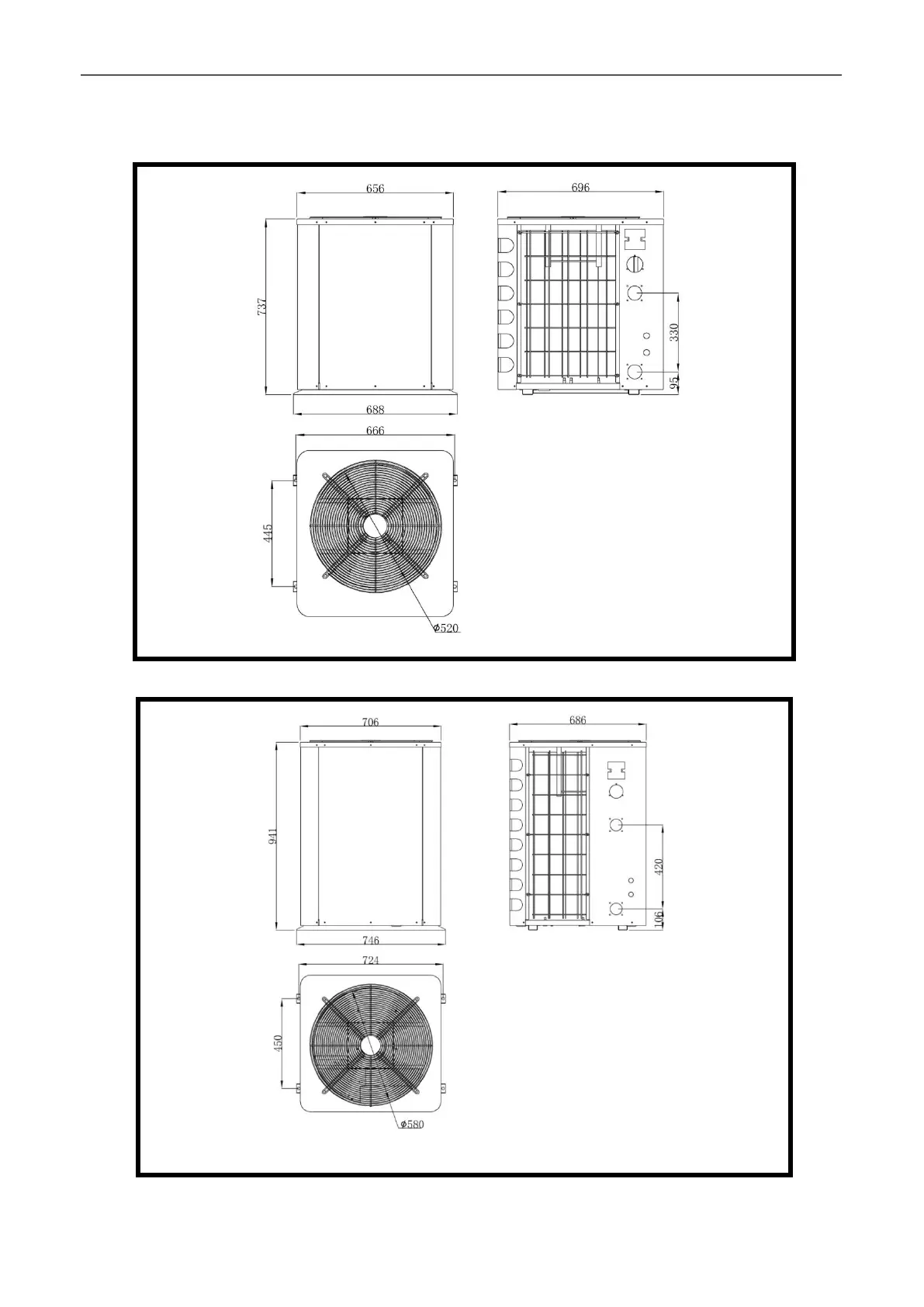 2.4 Dimensions for Swimming Pool Heat Pump Unit