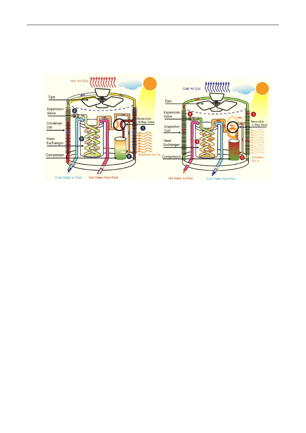 • The pool water becomes warmer and the hot gas cooling as it flows through the CONDENSER coil