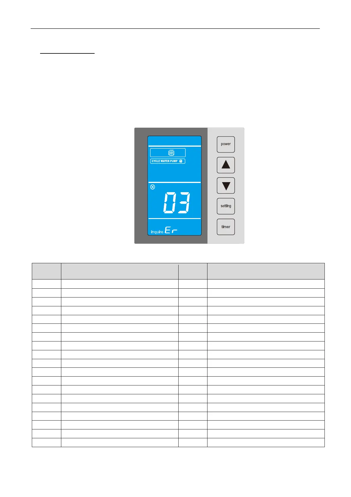 Please refer to the malfunction table to ascertain the failure cause and solution
