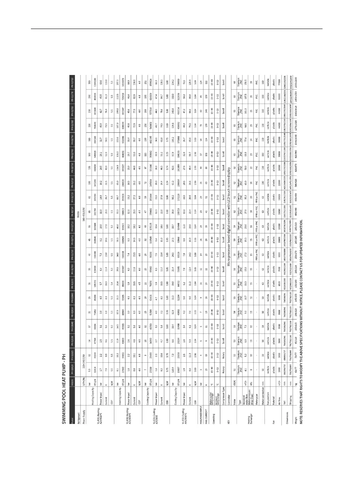 Aqua PH-02710 - Performance Data for Swimming Pool Heat Pump Unit