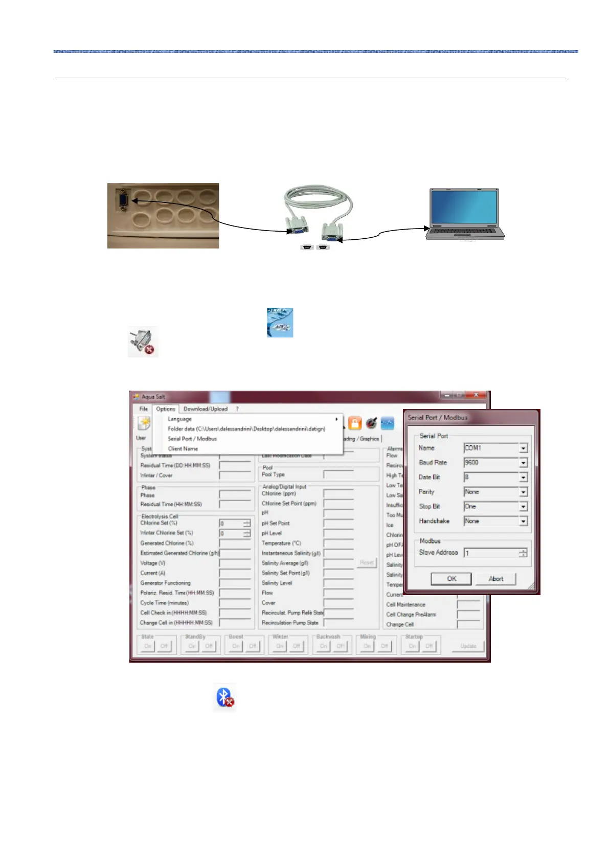 Click on the icon on the icon bar to activate the serial connection with the PC. Insert the default password 0000 and