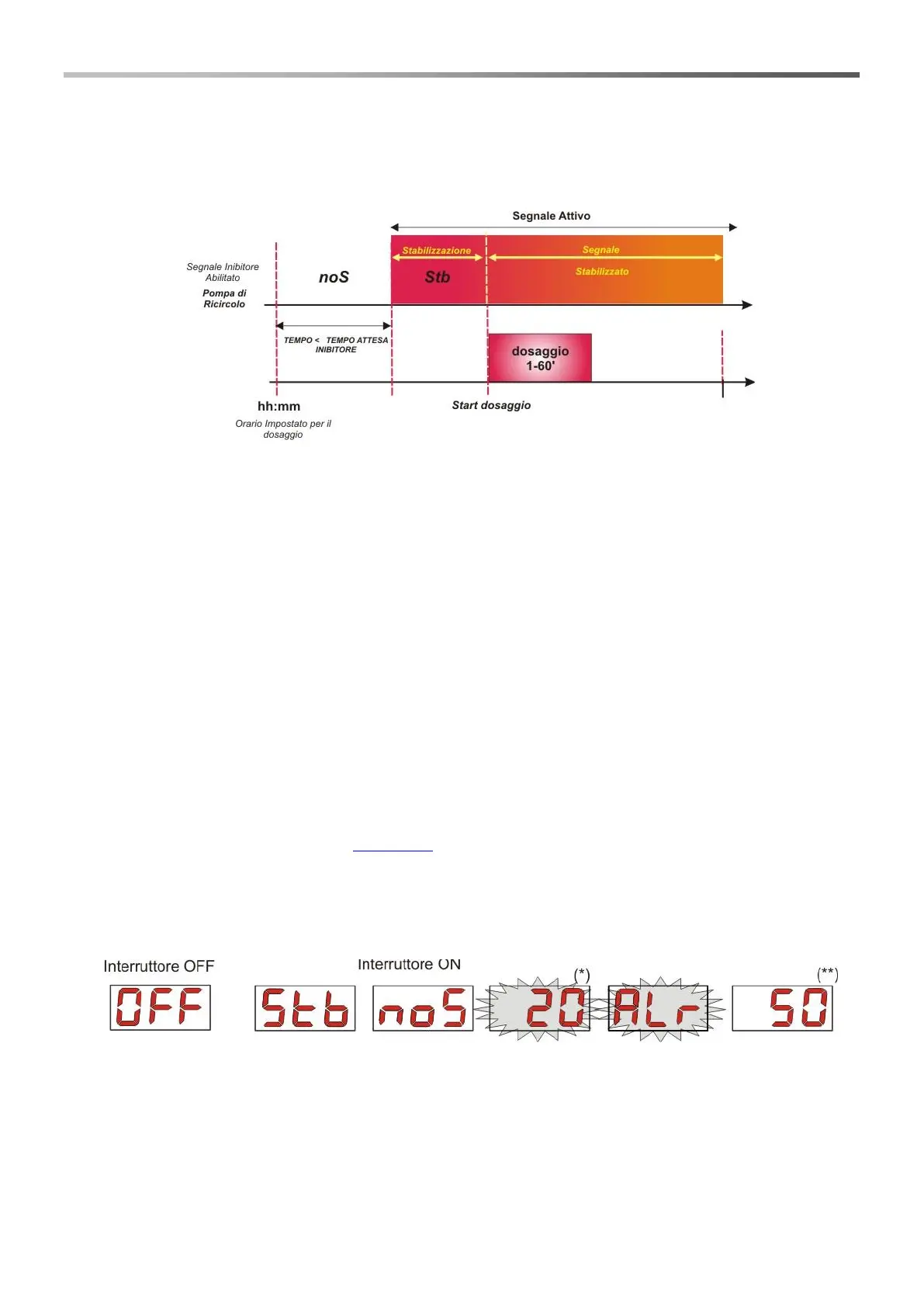 Dans le cas où le signal bloquant serait désactivé, la pompe dosera exactement à l'heure prévue, et pour la durée de