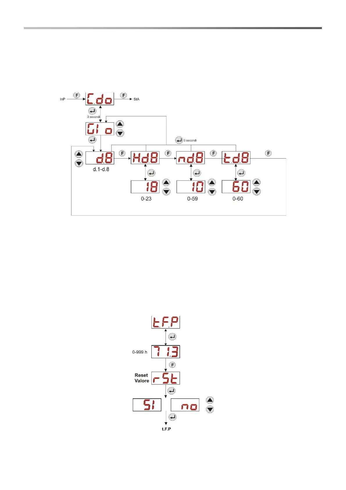 ▪ t.d.1-d.8: it allows you to display or set the corresponding dosage length d.1- d.8 expressed in minutes