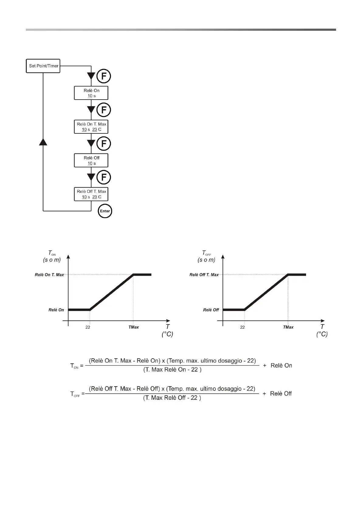 I due tempi di ON e OFF sono proporzionali alla temperatura raggiunta durante l’ultimo dosaggio secondo lo