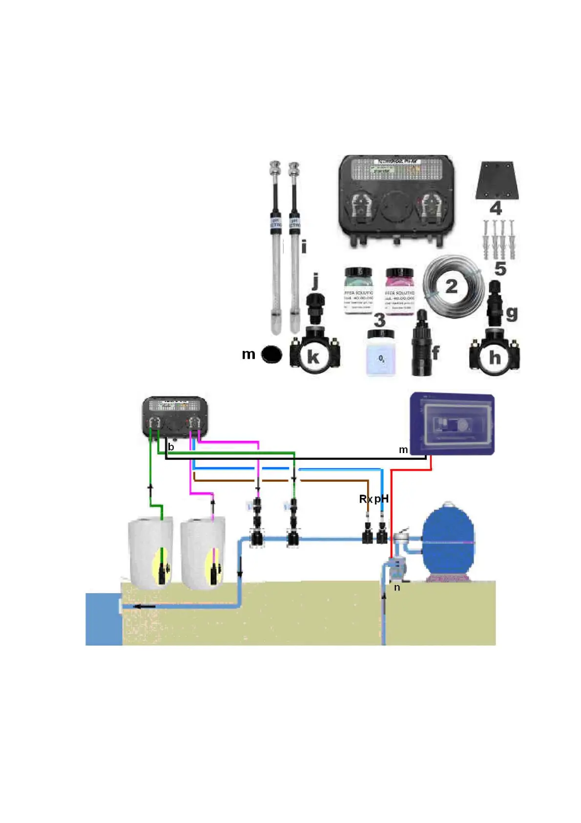 The power supply cable “b” is connected to the junction box “m” (must be 230v) on