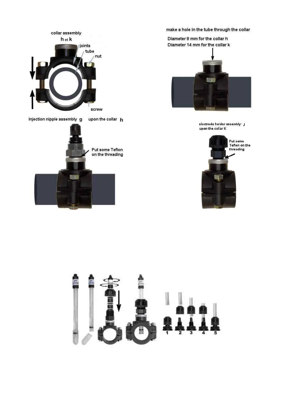 Assembly the electrode respecting the order of the pieces shown in the central figure.