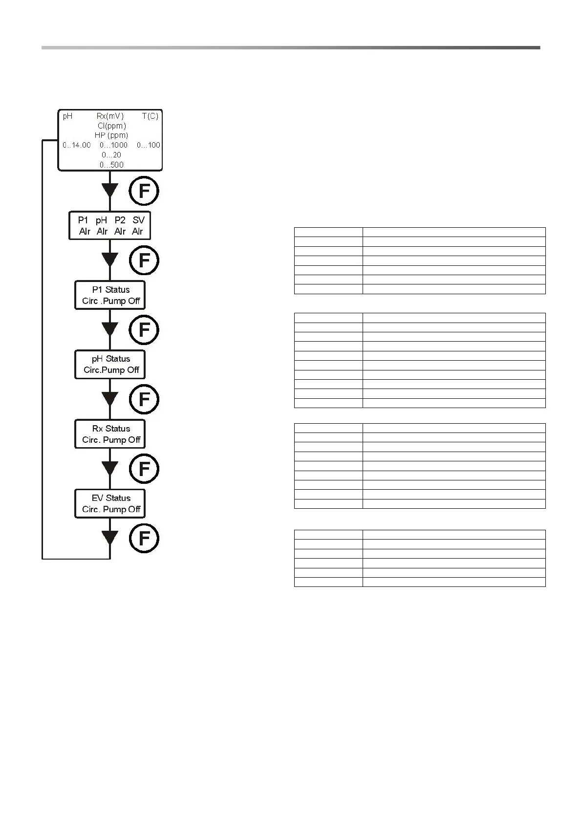 Displays the status of P2/Rx/Cl/HPpump (it is not displayed on Time/pH Technopool3).