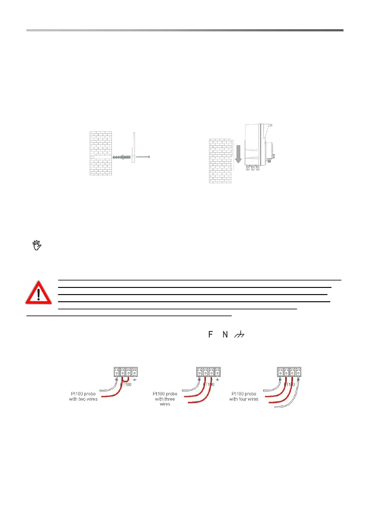 Connection of the temperature probe PT100 to the corresponding clamp; depending on the probe model available,