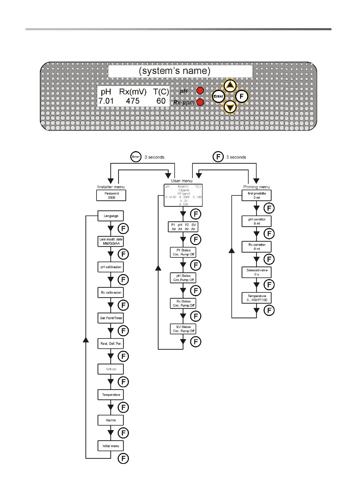Tecnopool programming system is divided in 2 menus: User and Installer.