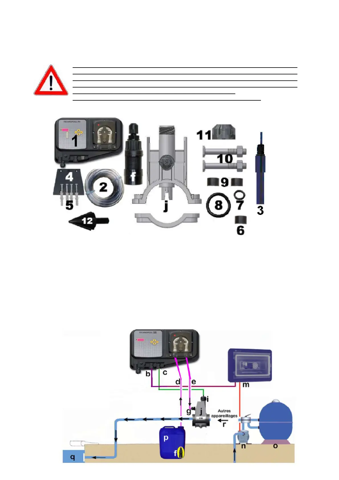 3 Temperature probe 4 Wall mount for pump