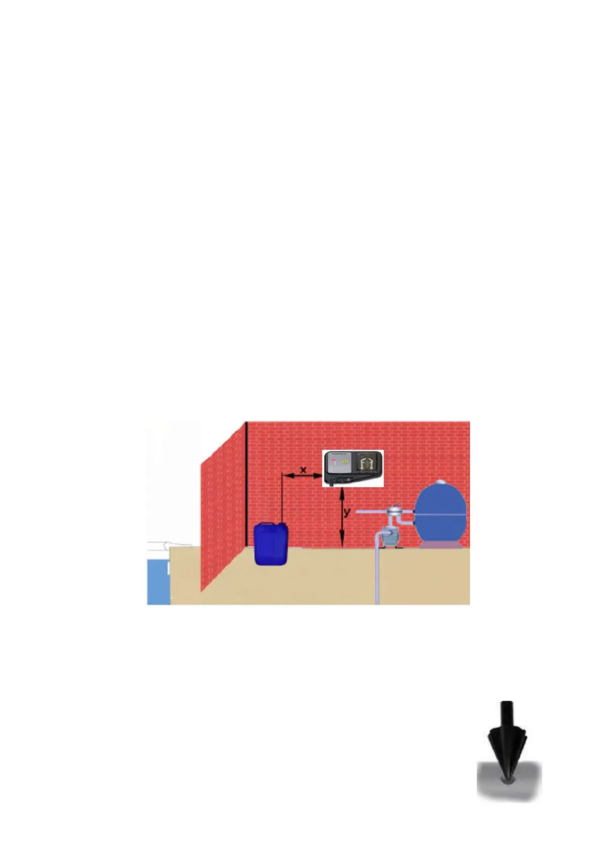 X = 1,5 meters, recommended distance between pump and product tank, to avoid corrosive