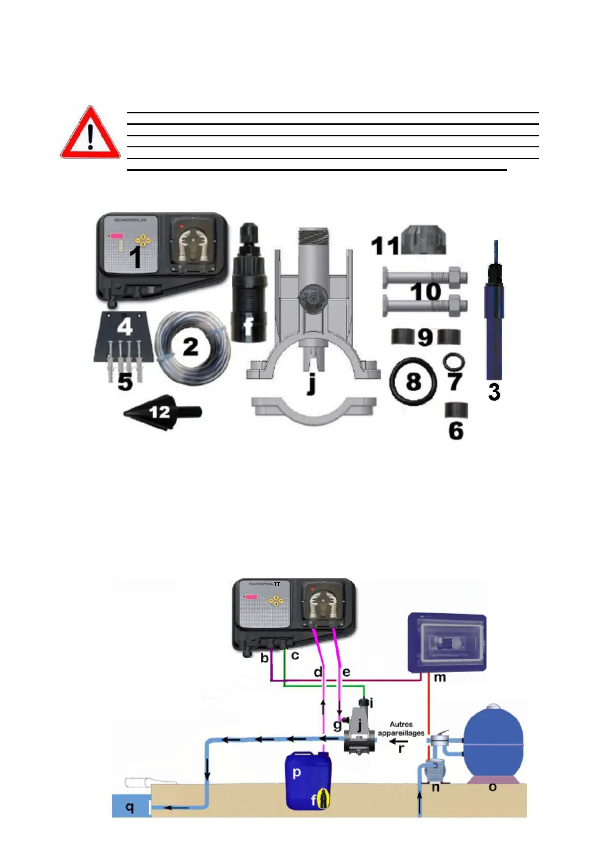 1 Bomba dosificadora Technopool 2 Tubo de aspiración e impulsión del producto