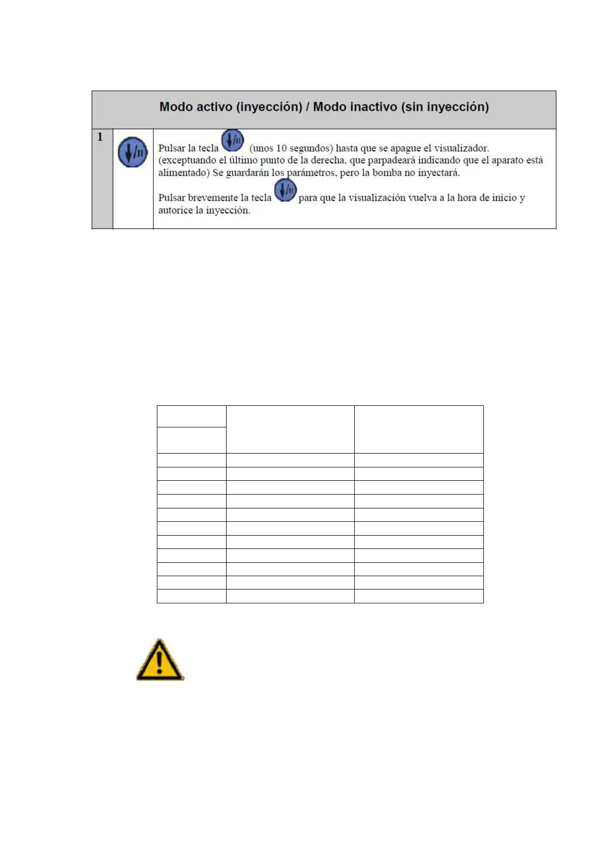 (Ejemplo: Si se quiere dosificar 233 ml, establezca el tiempo de la bomba en 10 minutos)