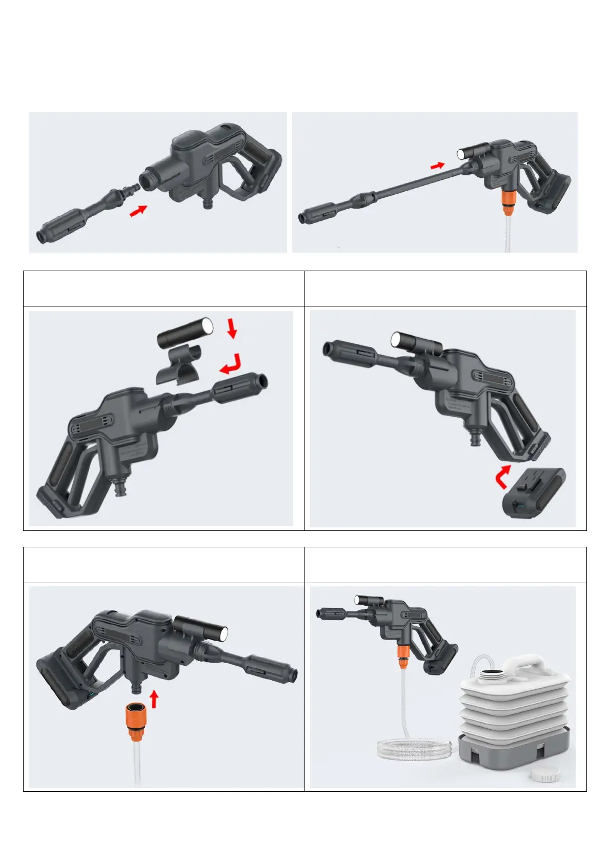 1. Insert the adjustable nozzle or lance to the motor device, turn from right to left to lock in.