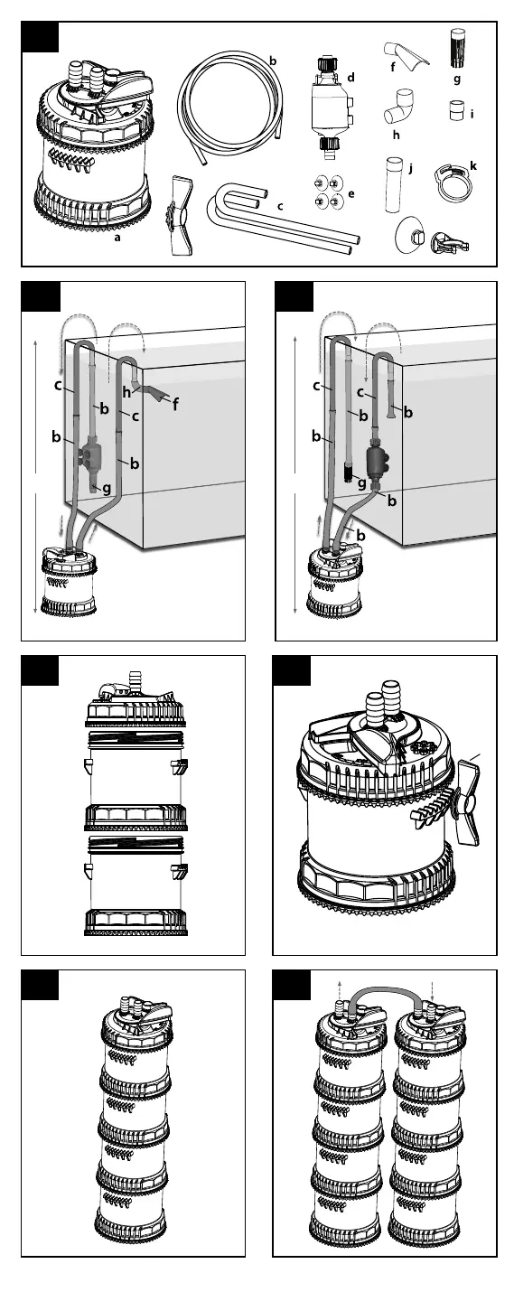 (capacity of filtration cartridges) to the aquarium capacity. Thanks to this solution MULTIKANI filter can