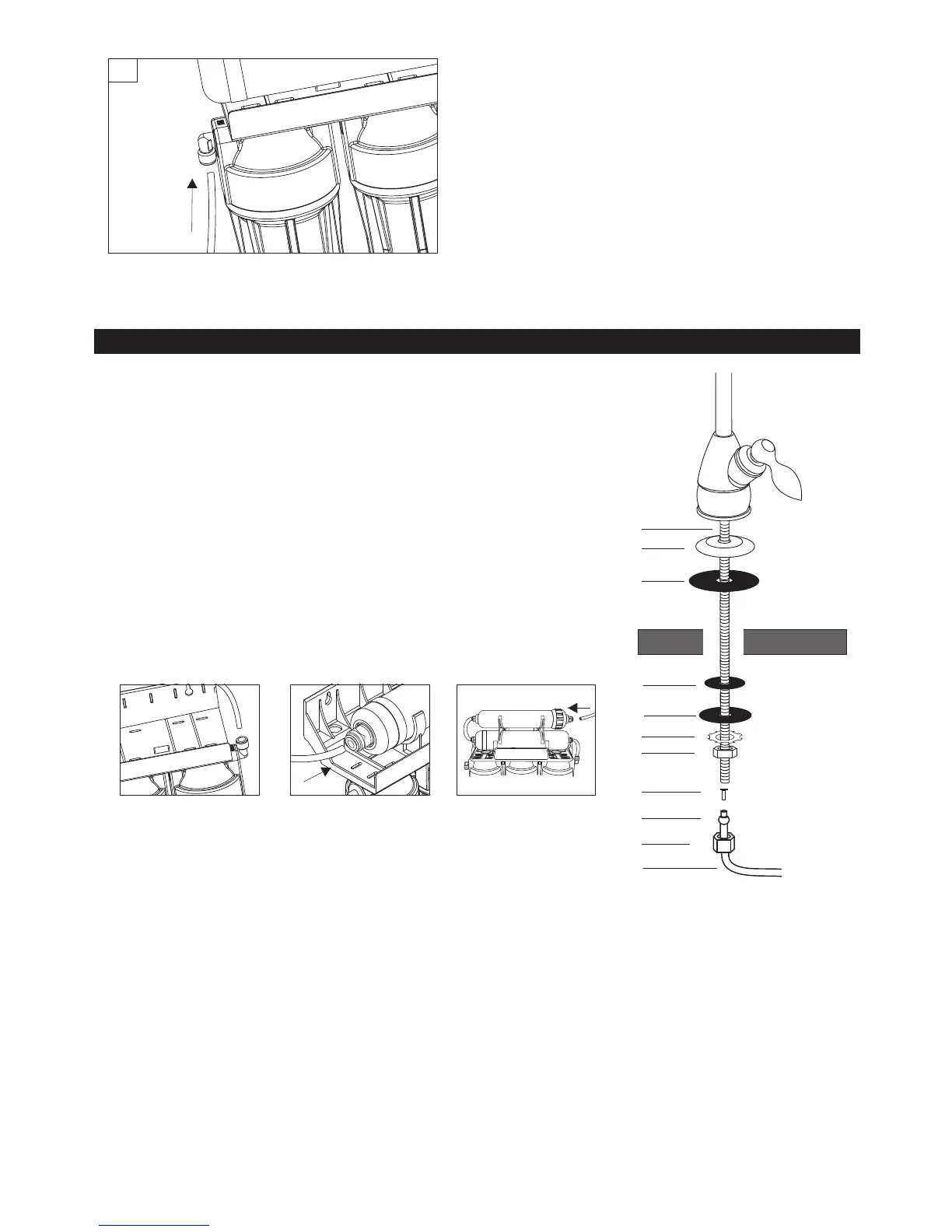 5) Install flexible tubing supplying water and connecting faucet with the system: