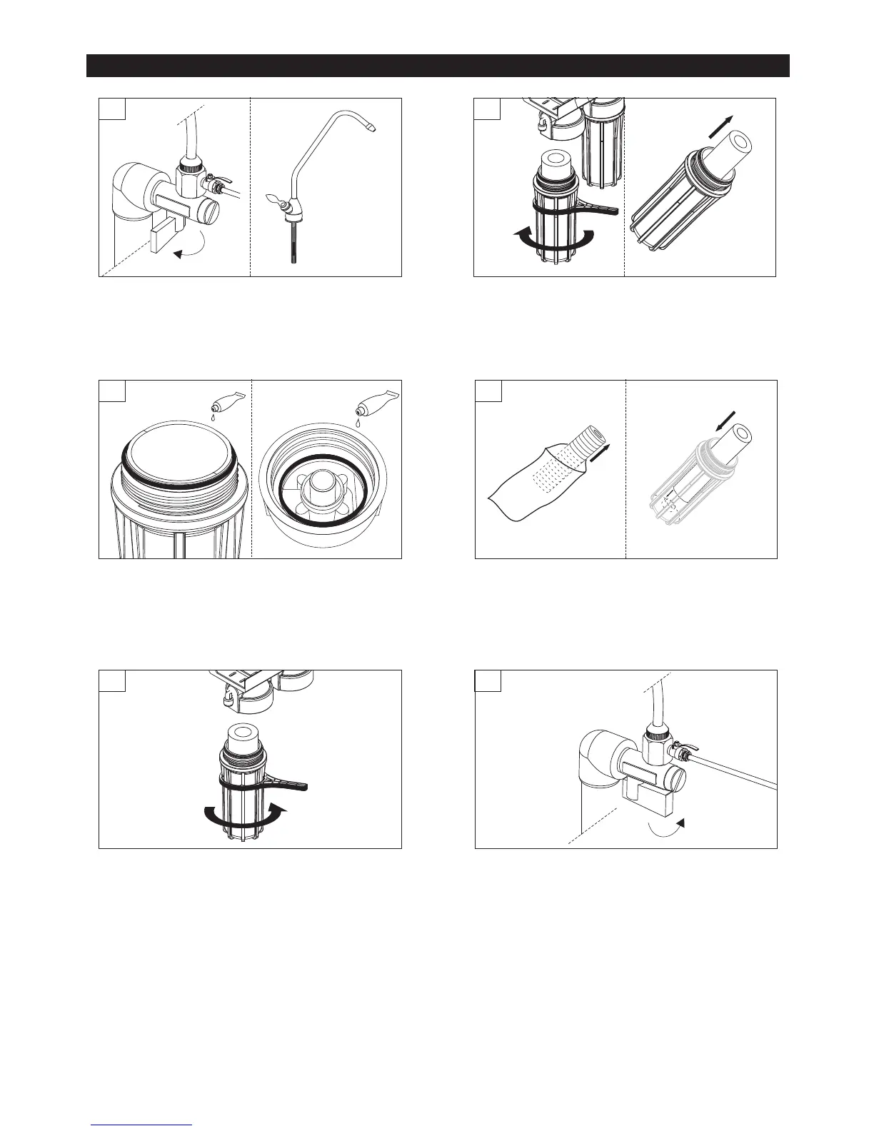 Lubricate filter housing o-rings, next turn the system 180