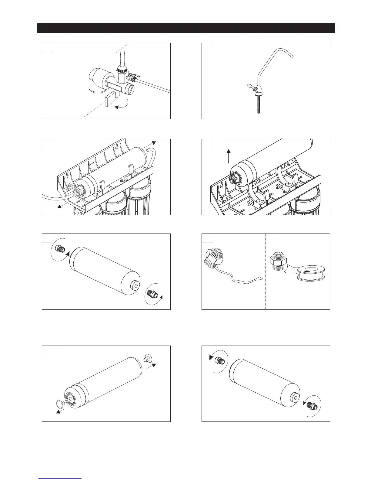 Shut off water supply valve. Open filter faucet to release pressure from the system.