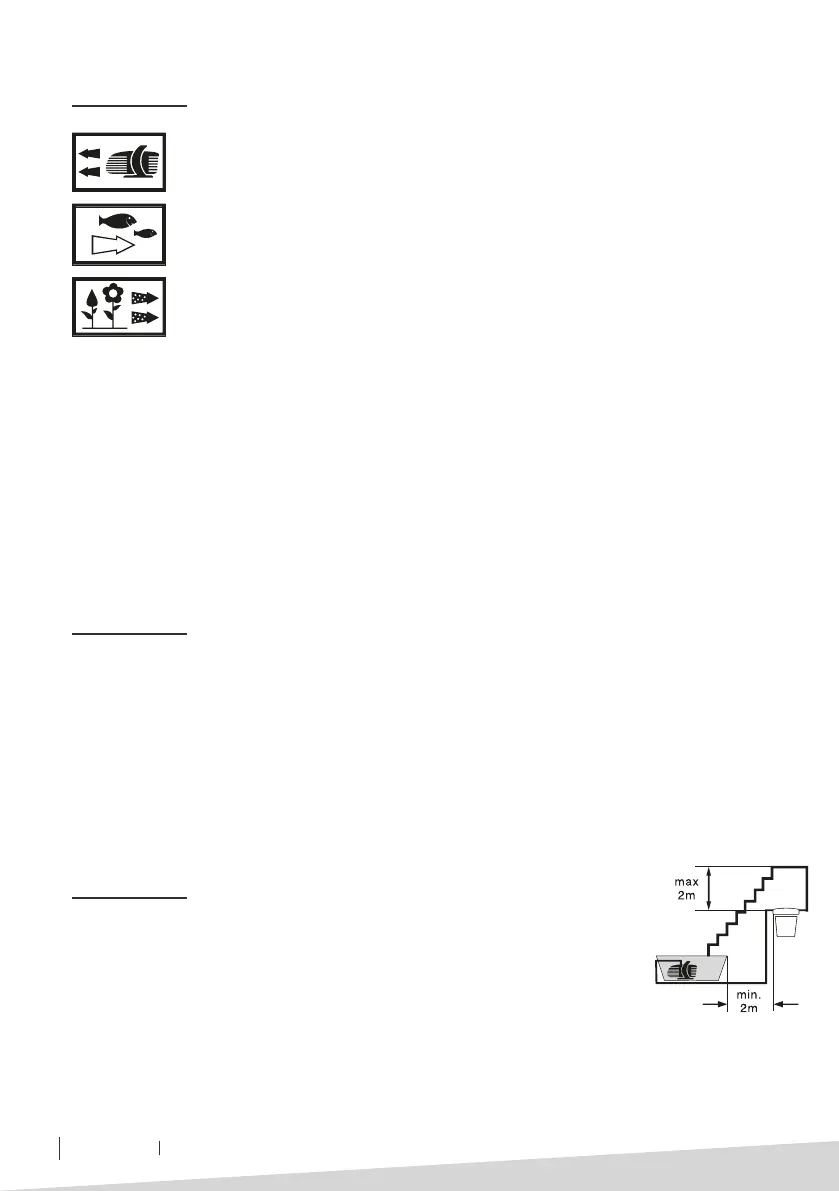 • Der Druckfilter sollte mindestens 2 Meter vom Teich entfernt aufgestellt werden. Der Abfluss des